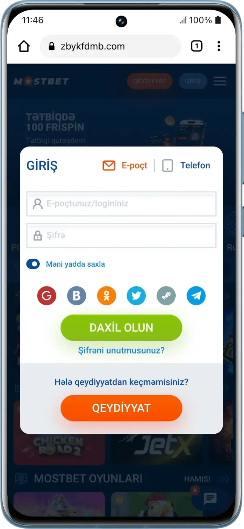 - Android telefonunuzda brauzeri açın və mostbetazerbaycanonline.com rəsmi saytına daxil olun.