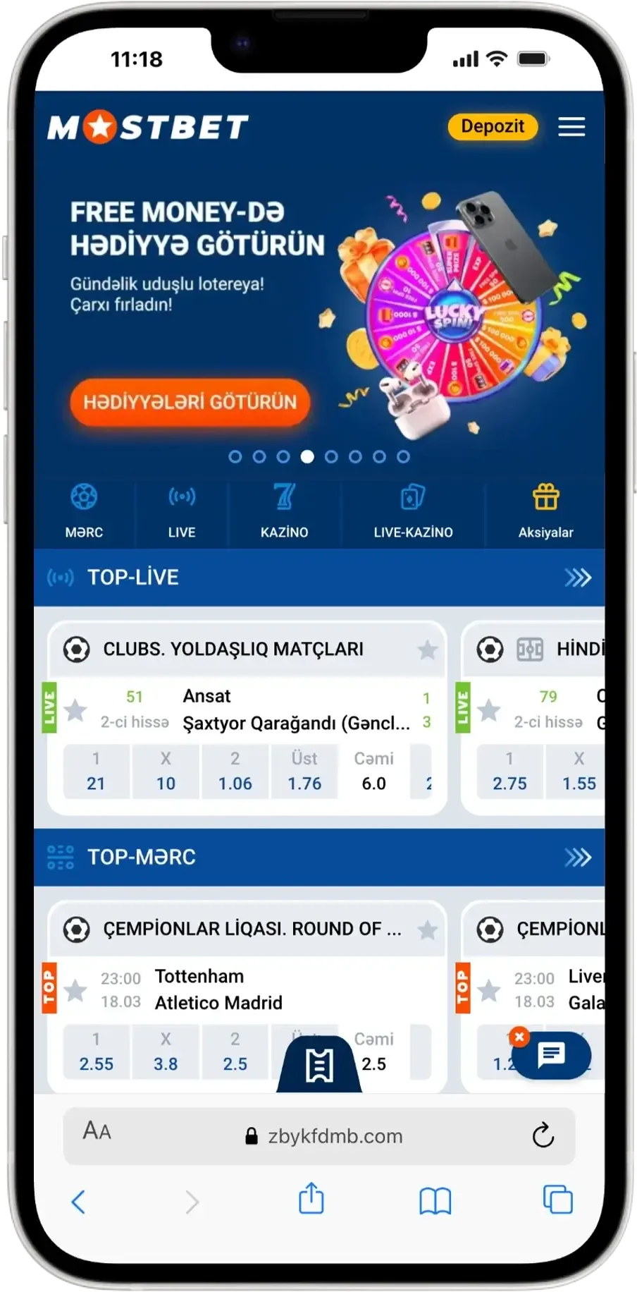 - Safari brauzerində mostbetazerbaycanonline.com saytını açın və əsas menyudan mobil app bölməsinə keçin.