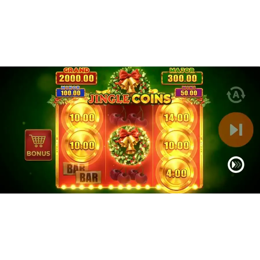 Sual: Jingle Coins temalı oyunlarda jackpot varmı? Cavab: Bəzi versiyalarda sabit jackpot səviyyələri (Mini, Major, Grand) və ya təsadüfi bonuslar ola bilər. Dəqiq qaydalar versiyadan asılıdır.